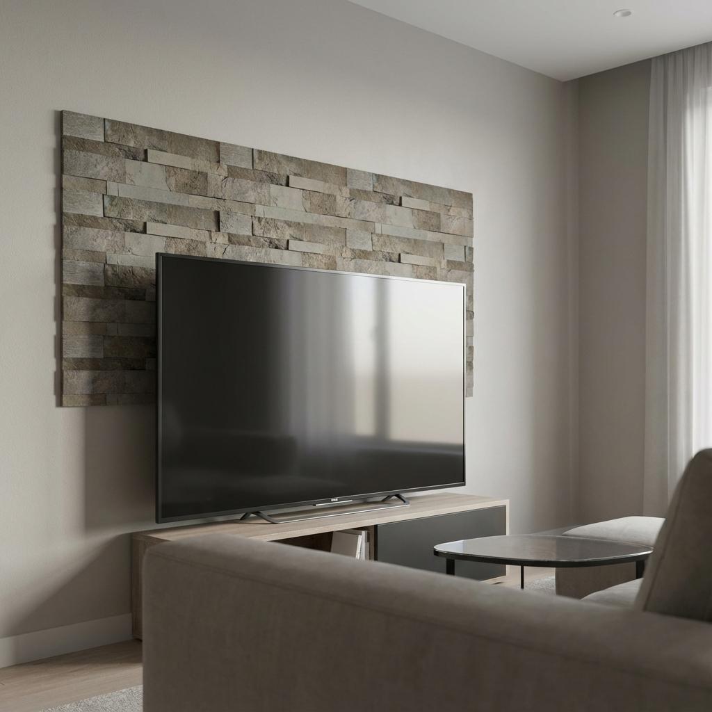 Stone Cladding constructed with PVC core and 3D Stone, finished in matte Multi-colour. Delivers a textured modern look suitable for accent walls.