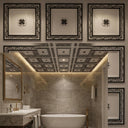 Intense Royal Black - Greek Geometric - Black, Grey - Decorative Ceiling Panel - 2 ft x 2 ft
