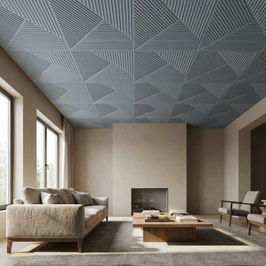 Aged Steel Blue - Greek Geometric - Blue, Gold - Decorative Ceiling Panel - 2 ft x 2 ft