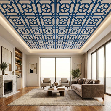 Expressive Blue Dove - Moraccan Meshwork - Blue, Grey - Decorative Ceiling Panel - 2 ft x 2 ft