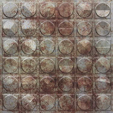 Pewter Old Town Tin - Greek Geometric - Grey, Silver - Decorative Ceiling Panel - 2 ft x 2 ft