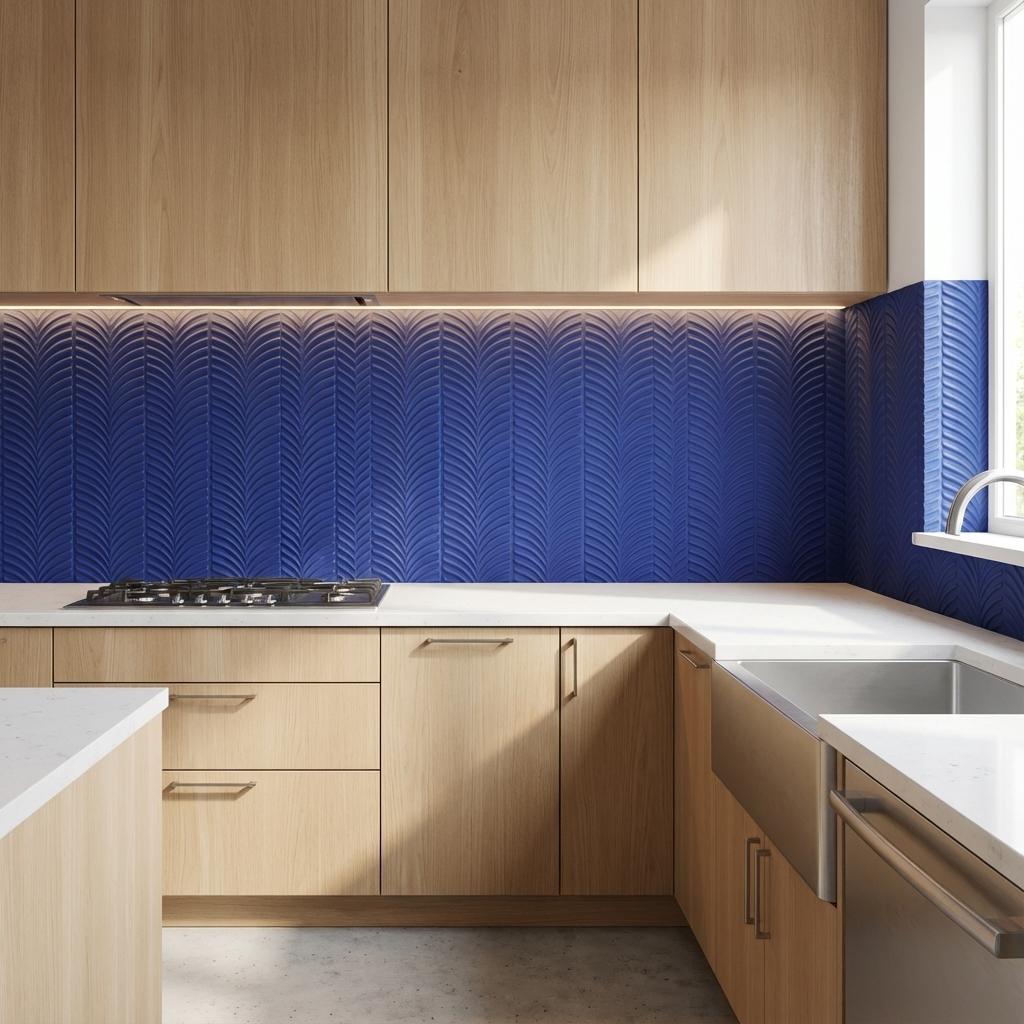 Deep navy blue subway speaks luxury and contemporary confidence. Jewel-toned sophistication meeting iconic form. Made from refined clay, quartz/silica, and feldspar fired at high temperature to create a dense, low‑porosity body with color and pattern running through the entire thickness for superior wear and chip camouflage.