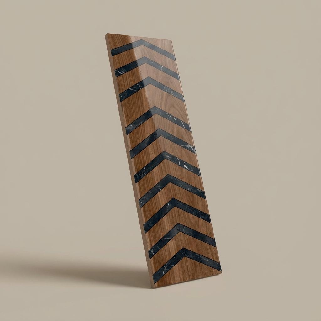 Deep wood aesthetic without susceptibility to time's wear. Rich grain preserved in robust, contemporary material. Made from refined clay, quartz/silica, and feldspar fired at high temperature to create a dense, low‑porosity body with color and pattern running through the entire thickness for superior wear and chip camouflage.