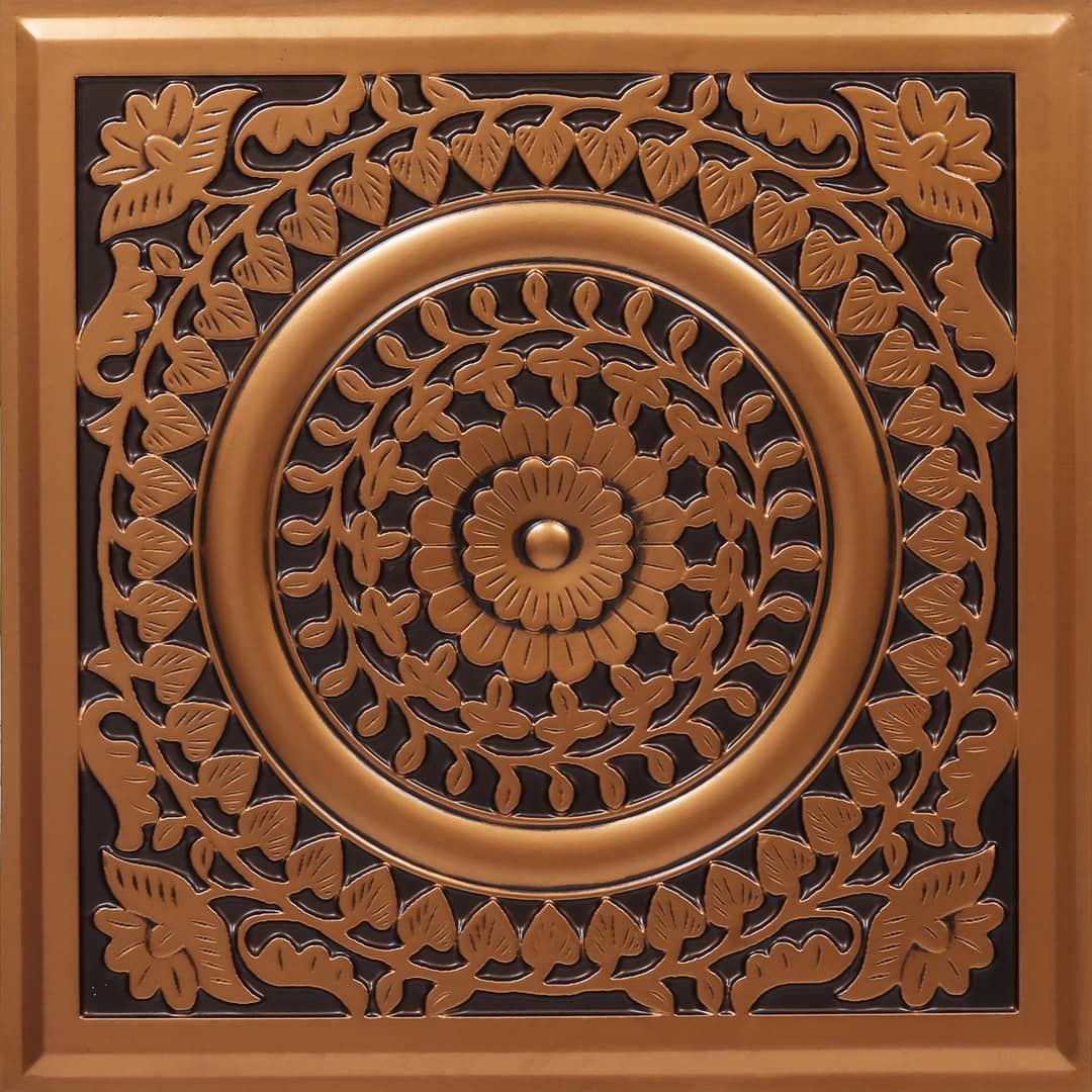 Antique Antique Copper - Persian Motifs - Copper, Bronze - Decorative Ceiling Panel - 2 ft x 2 ft
