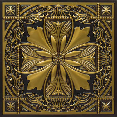 Antique Brass Sophisticated - Baali Botanical - Brass, Bronze - Decorative Ceiling Panel - 2 ft x 2 ft