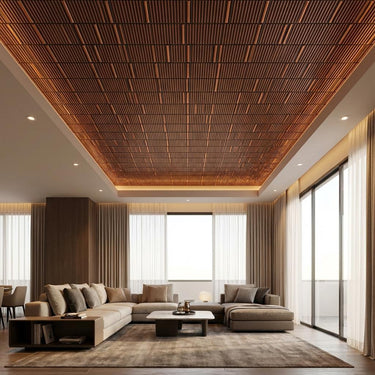 Antique Copper Burnished features luxurious metallic finishes for contemporary interiors. This sophisticated PVC ceiling panel combines stunning visual appeal with practical durability, using advanced printing technology to create authentic metallic effects with impressive depth. The glossy finish beautifully reflects light, perfect for modern elegance. Ideal for statement-making spaces, this panel delivers exceptional quality with water resistance, easy maintenance, and remarkable longevity.