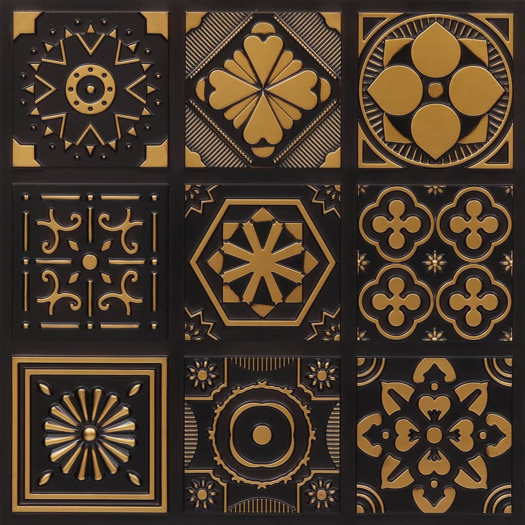 Antique Gold Shine - Persian Motifs - Gold, Brown - Decorative Ceiling Panel - 2 ft x 2 ft