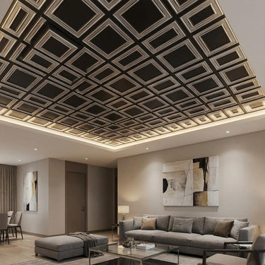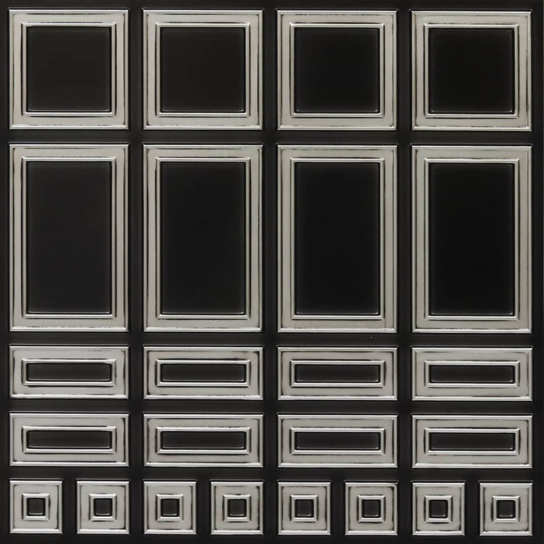 Antique Silver Patina - Greek Geometric - Silver, Grey - Decorative Ceiling Panel - 2 ft x 2 ft