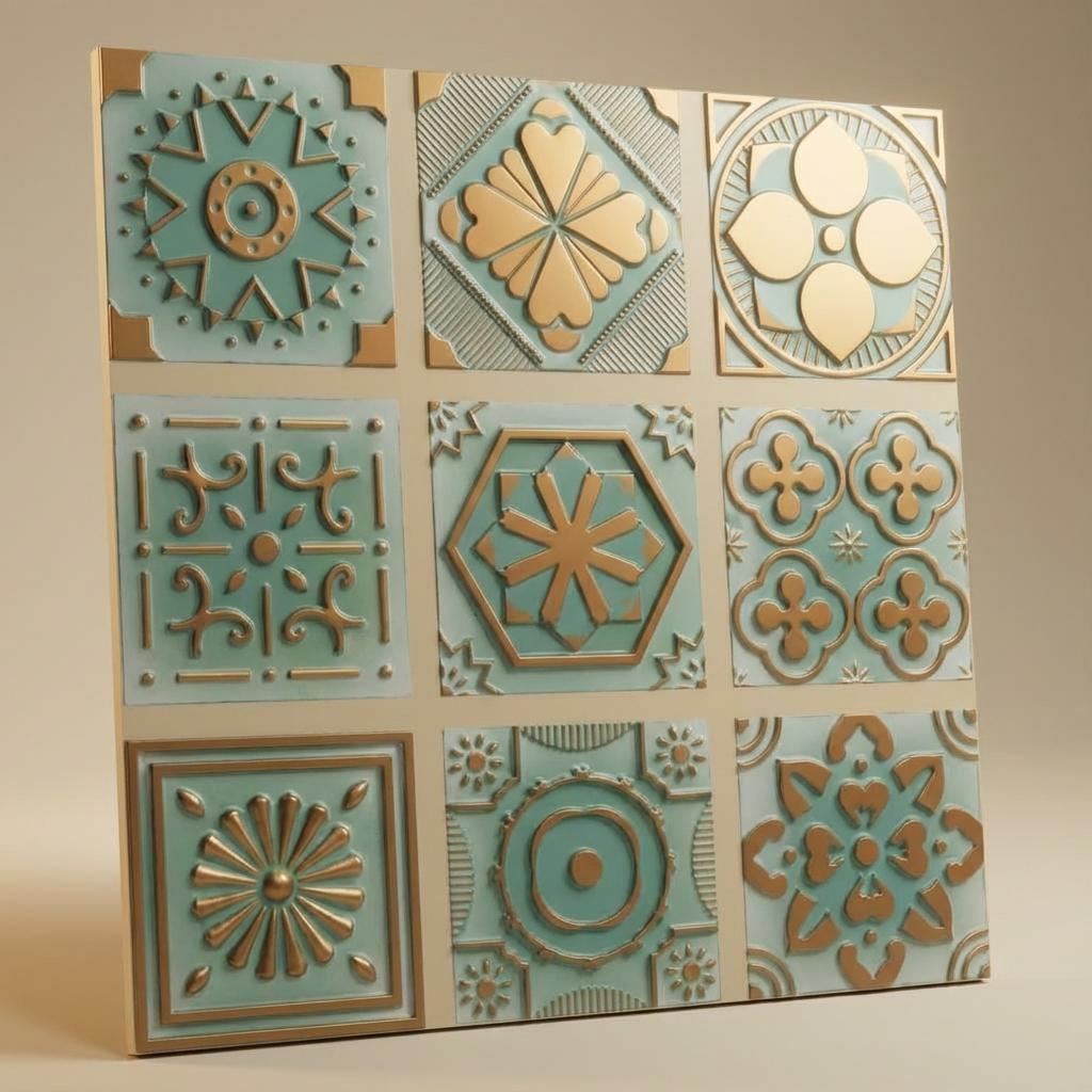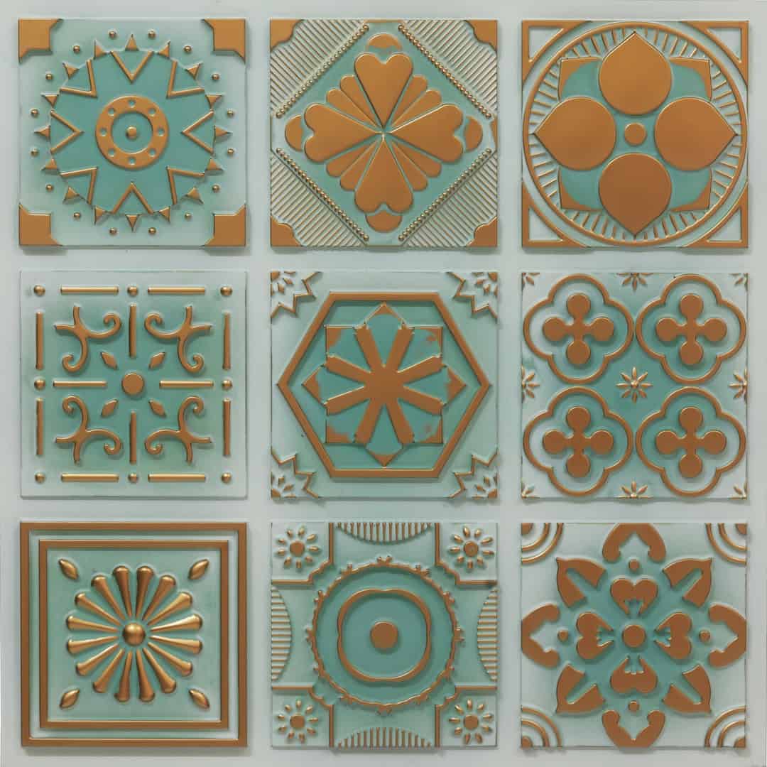 Dynamic Arabian Green - Persian Motifs - Green, Gold - Decorative Ceiling Panel - 2 ft x 2 ft