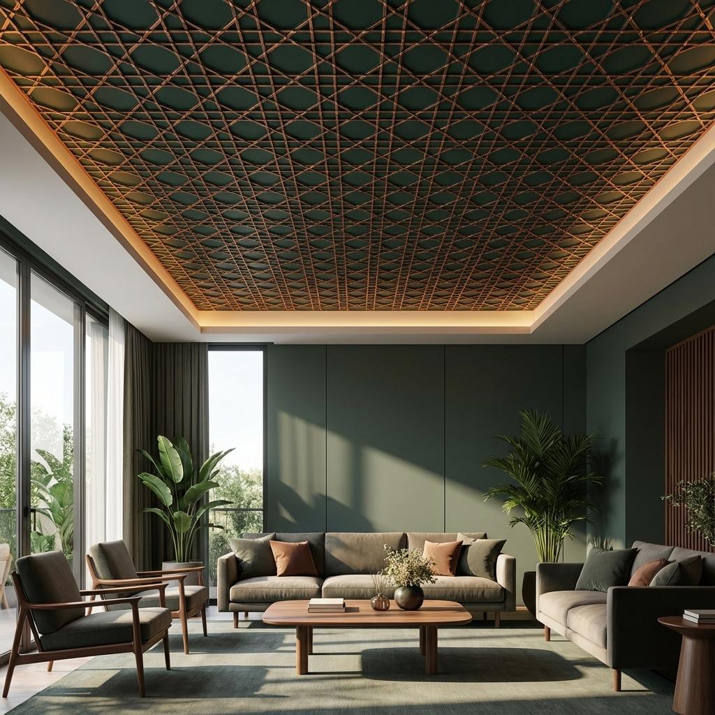 Bronze Royal Green - Moraccan Meshwork - Green, Black - Decorative Ceiling Panel - 2 ft x 2 ft