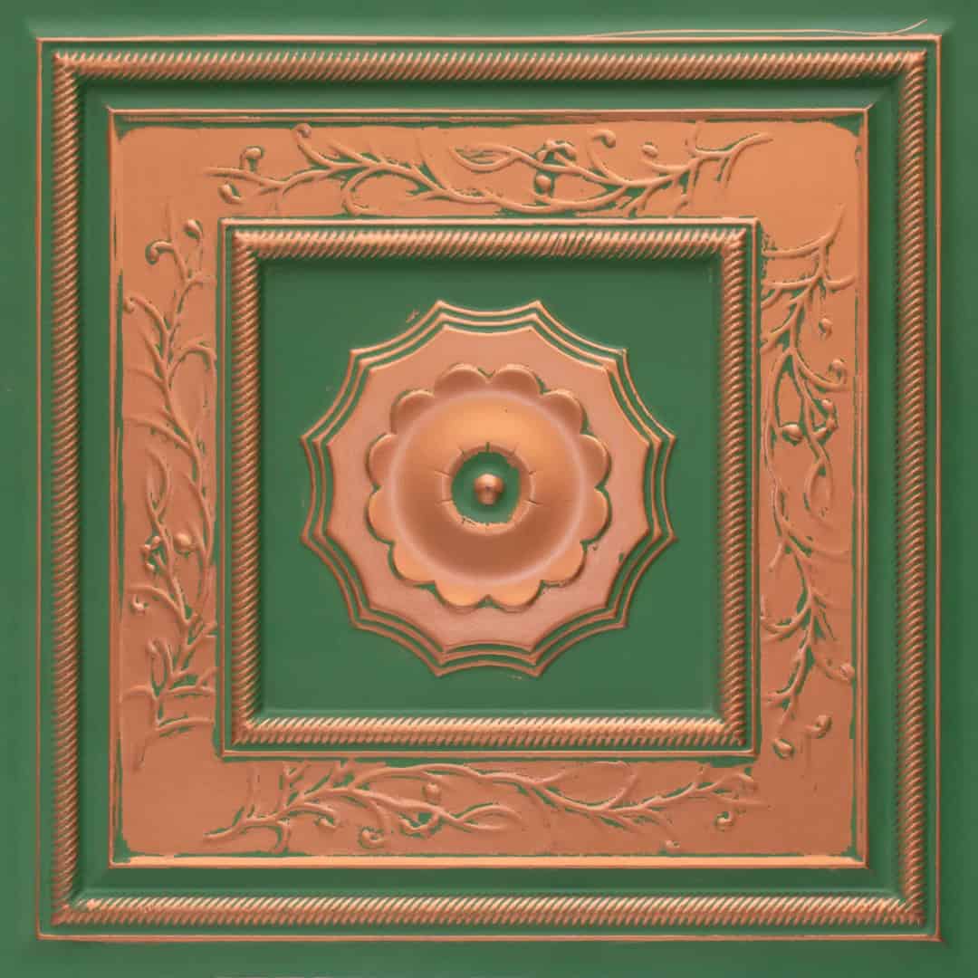Shine Patina Deep And Dark - Baali Botanical - Green, Black - Decorative Ceiling Panel - 2 ft x 2 ft
