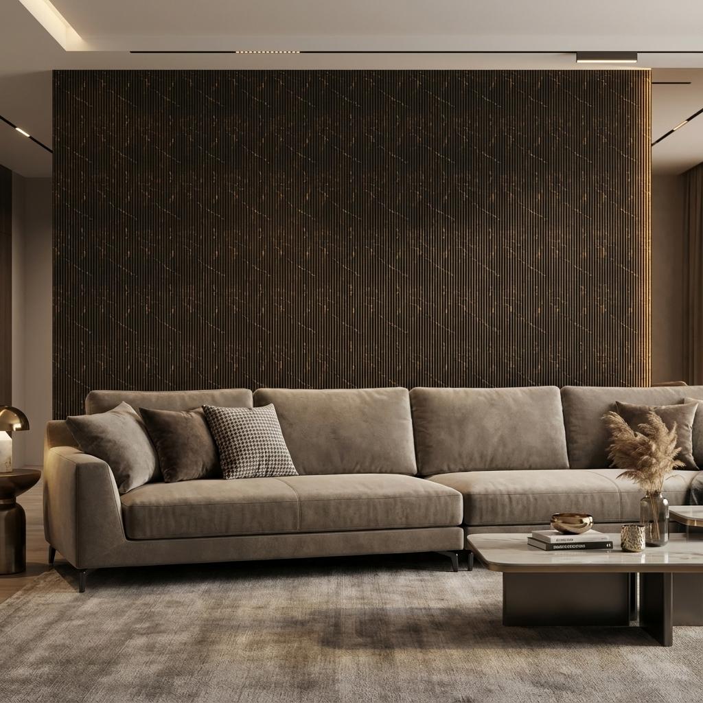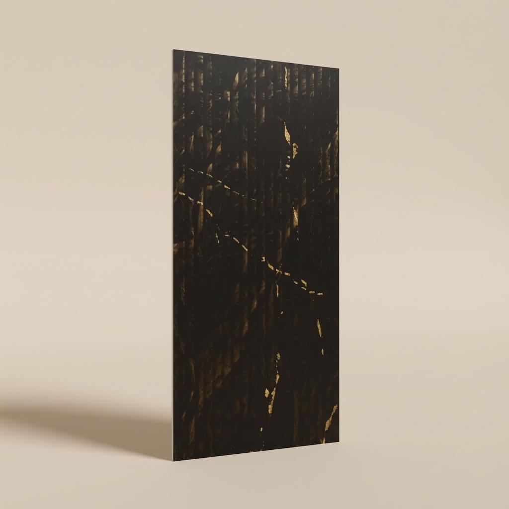 Louvers constructed with PVC core and Marble, finished in glossy Golden Black. Delivers a glossy modern look suitable for accent walls.