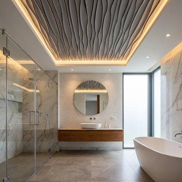 Avant Royal Black features luxurious metallic finishes for contemporary interiors. This sophisticated PVC ceiling panel combines stunning visual appeal with practical durability, using advanced printing technology to create authentic metallic effects with impressive depth. The glossy finish beautifully reflects light, perfect for modern elegance. Ideal for statement-making spaces, this panel delivers exceptional quality with water resistance, easy maintenance, and remarkable longevity.