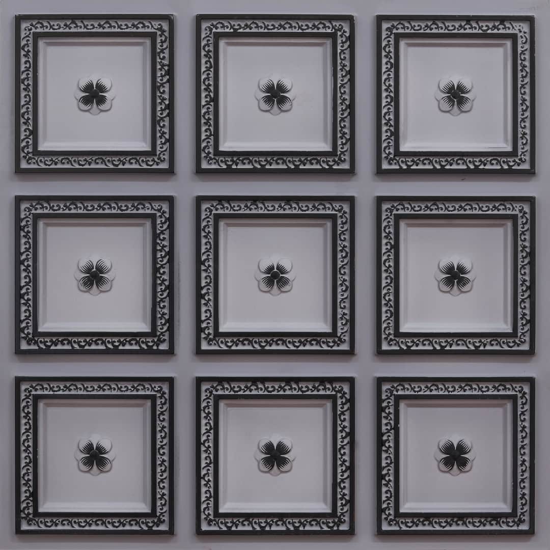 Intense Royal Black - Greek Geometric - Black, Grey - Decorative Ceiling Panel - 2 ft x 2 ft