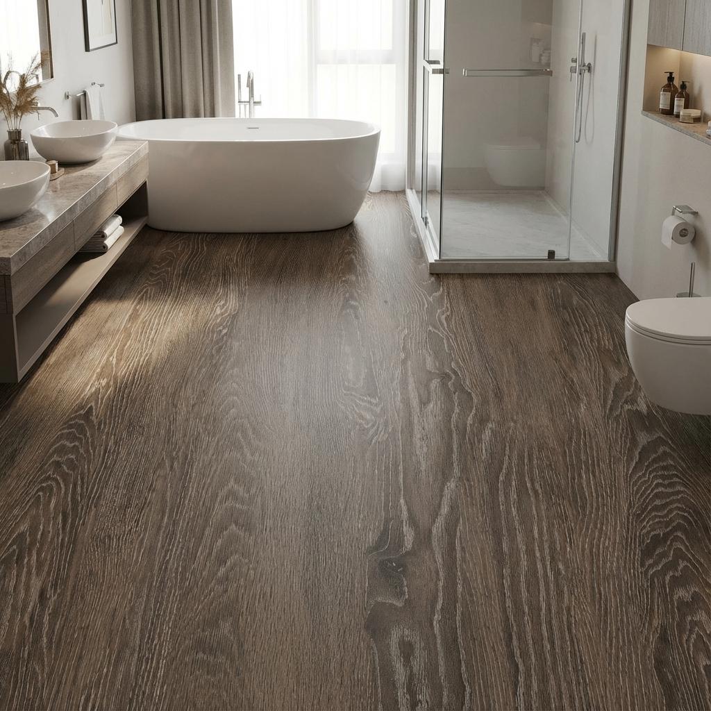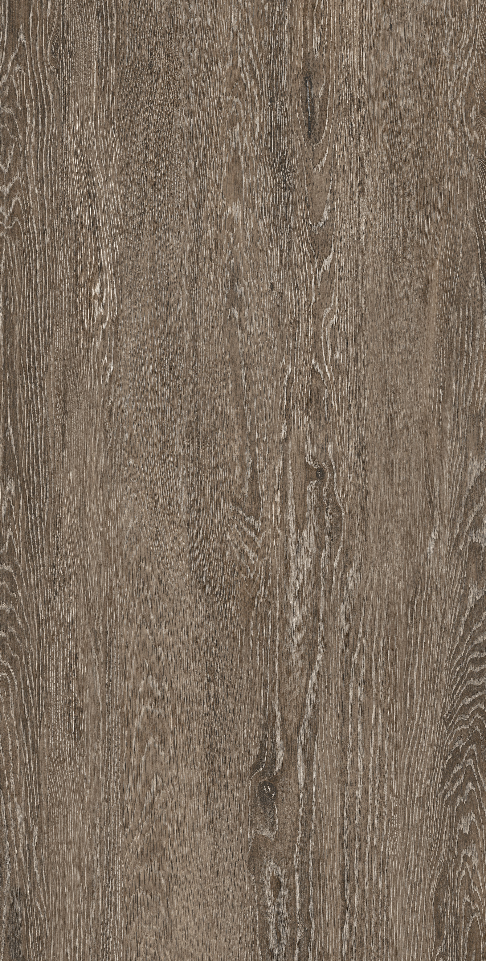 Deep wood aesthetic without susceptibility to time's wear. Rich grain preserved in robust, contemporary material. Made from refined clay, quartz/silica, and feldspar fired at high temperature to create a dense, low‑porosity body with color and pattern running through the entire thickness for superior wear and chip camouflage.
