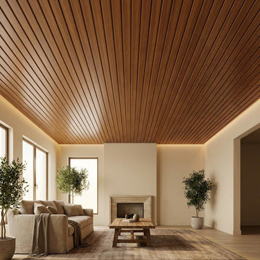 Willow Walnut combines authentic wood aesthetics with durable PVC engineering. This premium ceiling panel features high-definition printing that captures genuine wood grain patterns and textures, delivering warmth and elegance without maintenance demands. The matte finish minimizes glare, creating a sophisticated, welcoming ambiance. Engineered for effortless installation and exceptional durability, this panel provides superior water resistance and lasting beauty, transforming any space into an elegant sanctuary.