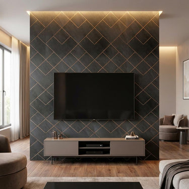 Metal Engraved Stone Panels constructed with Engineered Wood core and Stone, finished in matte Multi-colour. Delivers a textured modern look suitable for accent walls.