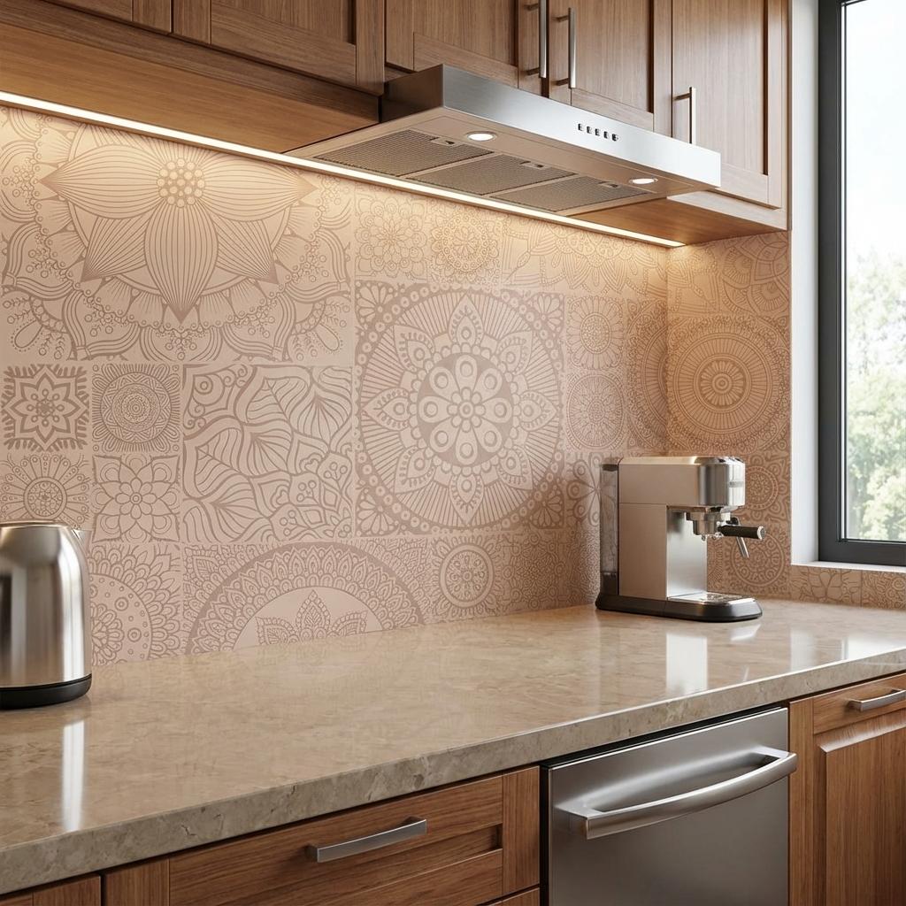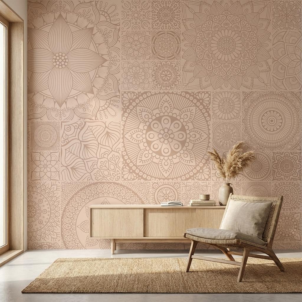Mandala Desert Palm Contemporary, Beige, Printed, Tiles - Vitrified - Full Body, 2 x 2 ft, 8.5 mm