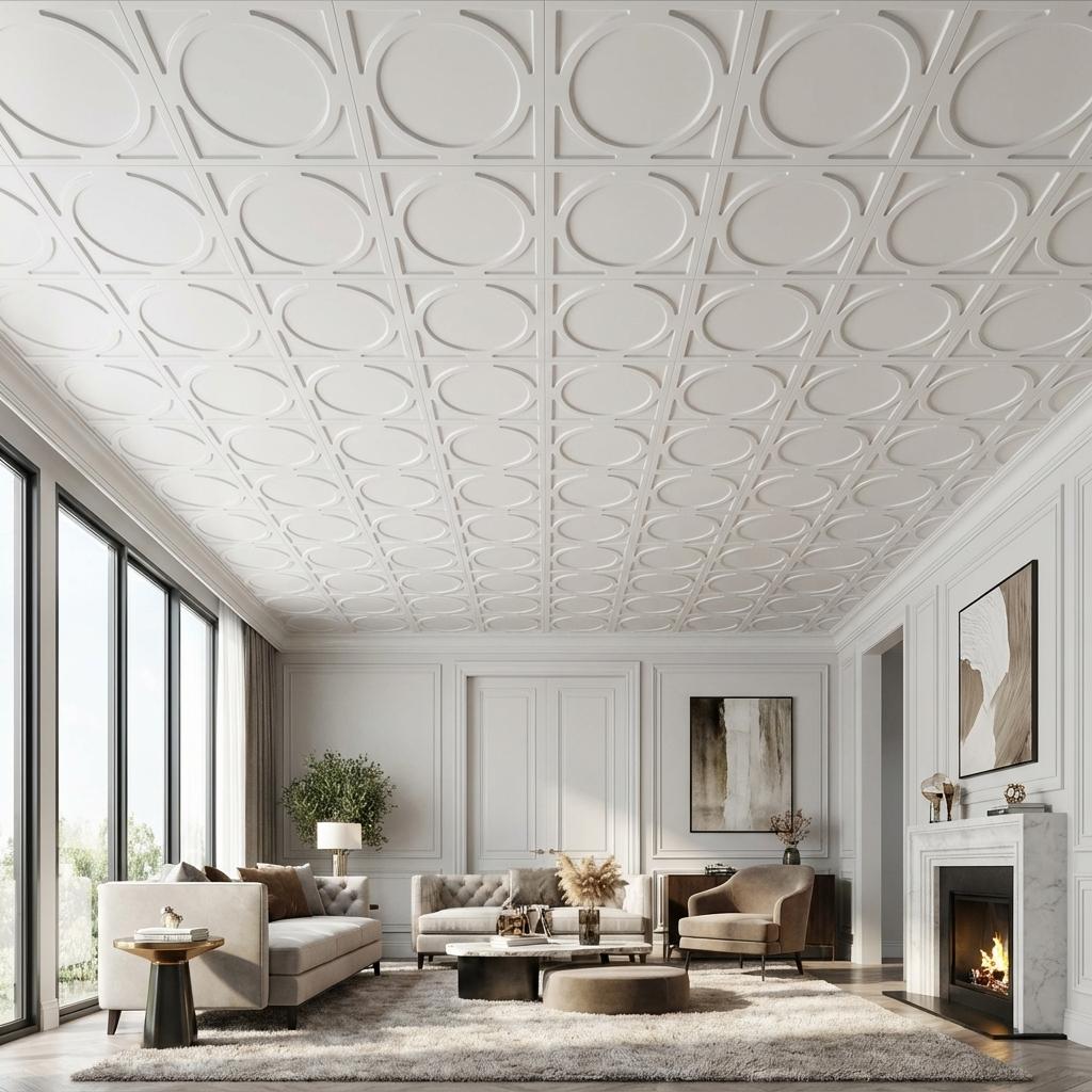 Essential Marble Paintable - Greek Geometric - White - Decorative Ceiling Panel - 2 ft x 2 ft