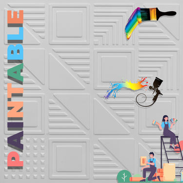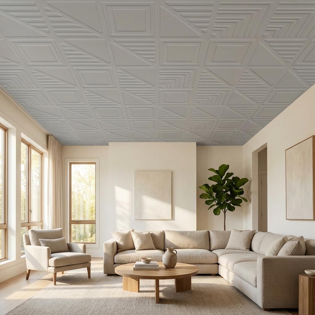 Minimal Porcelain Paintable - Greek Geometric - White - Decorative Ceiling Panel - 2 ft x 2 ft