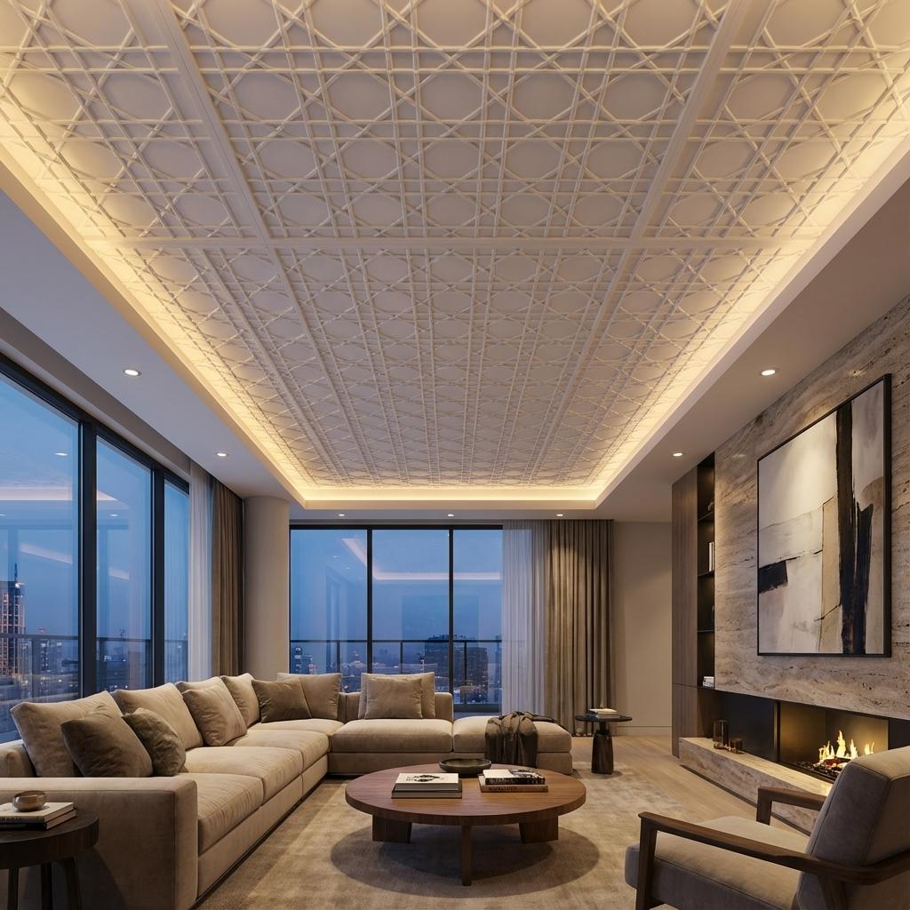 Simple Pearl Paintable - Moraccan Meshwork - White - Decorative Ceiling Panel - 2 ft x 2 ft