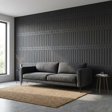 Decorative Highlighter Panels constructed with Engineered Wood core and Groove Profiles, finished in velvet Velvet Black. Delivers a velvet modern look suitable for accent walls.