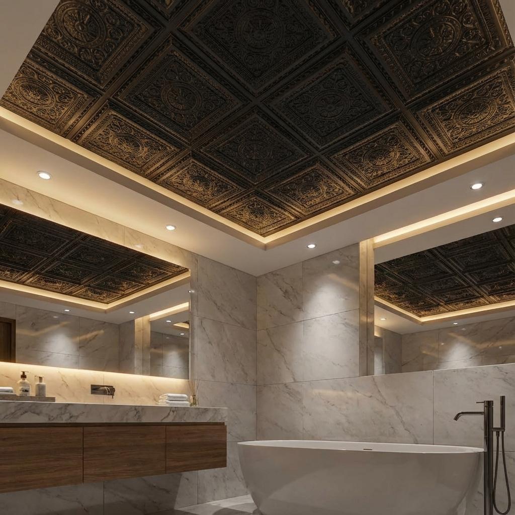 Single Black features luxurious metallic finishes for contemporary interiors. This sophisticated PVC ceiling panel combines stunning visual appeal with practical durability, using advanced printing technology to create authentic metallic effects with impressive depth. The glossy finish beautifully reflects light, perfect for modern elegance. Ideal for statement-making spaces, this panel delivers exceptional quality with water resistance, easy maintenance, and remarkable longevity.
