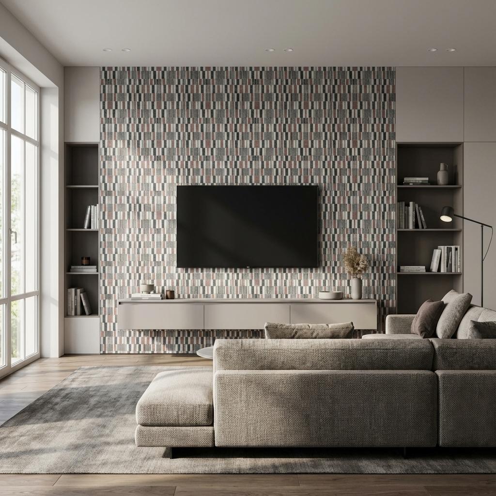 Decorative Highlighter Panels constructed with Paper core and Fabric - Abstract, finished in matte Soft Pinkish Beige. Delivers a textured modern look suitable for accent walls.