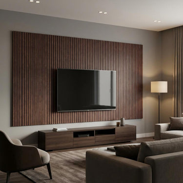 Louvers constructed with Recycled PP core and Wood, finished in matte Grey. Delivers a textured modern look suitable for accent walls.