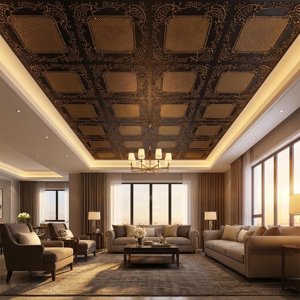 Opulent Antique Gold - Moraccan Meshwork - Gold, Brown - Decorative Ceiling Panel - 2 ft x 2 ft