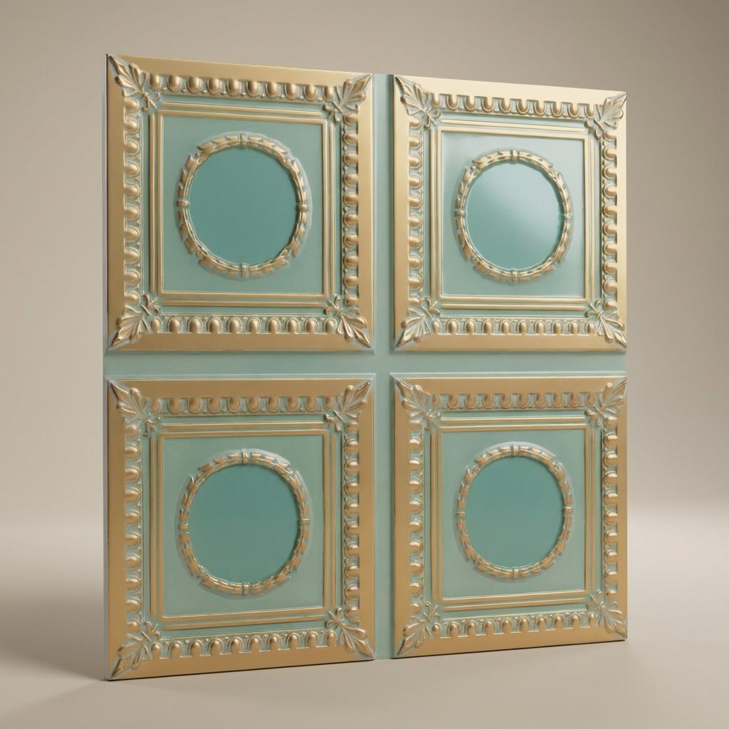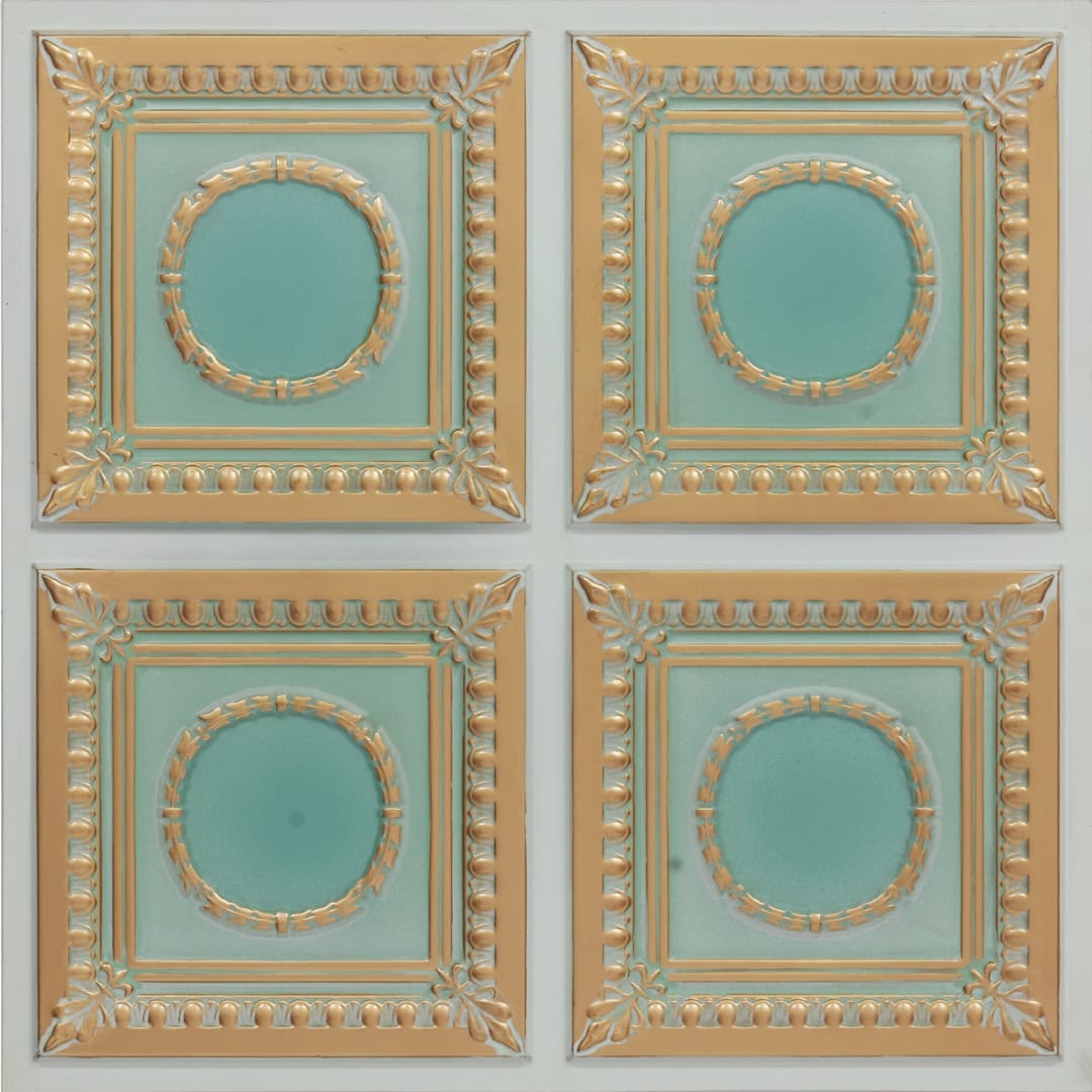Inspire Arabian Green - Persian Motifs - Green, Gold - Decorative Ceiling Panel - 2 ft x 2 ft
