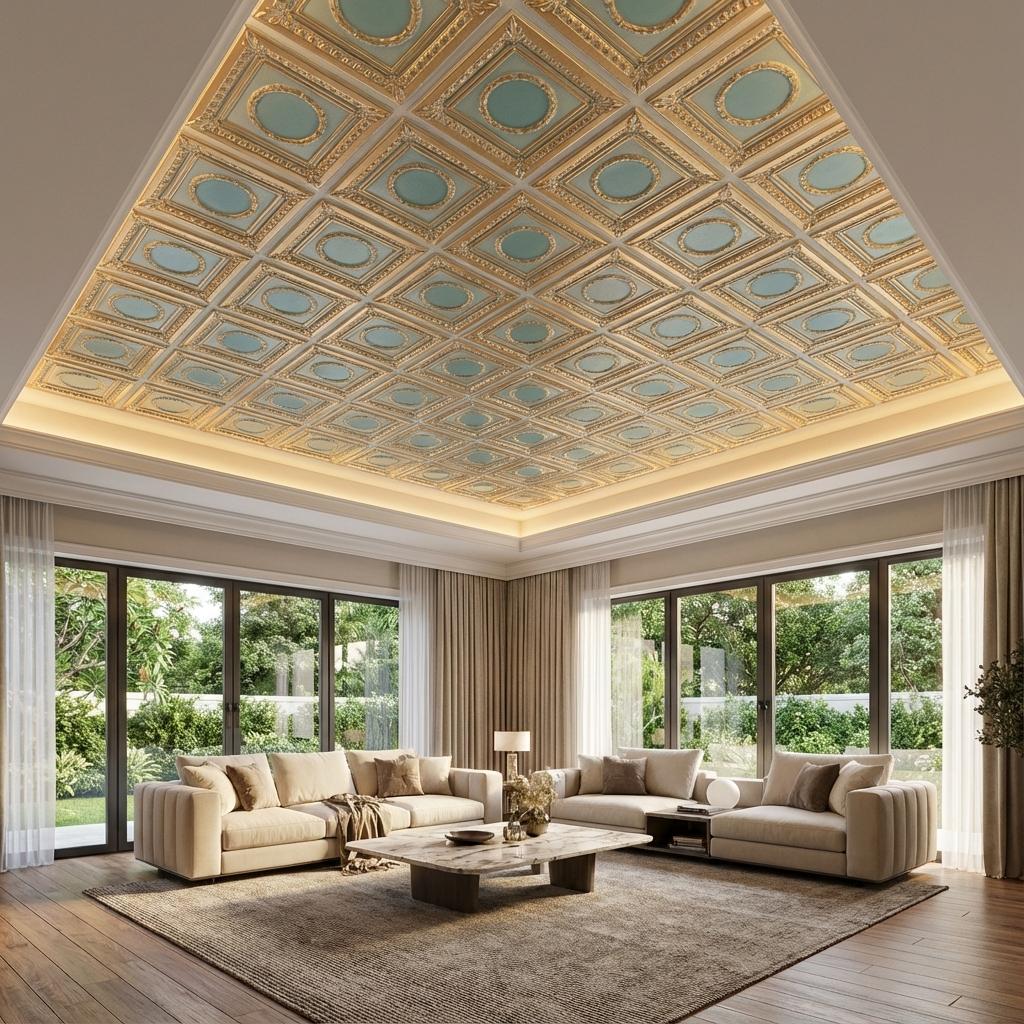 Inspire Arabian Green features luxurious metallic finishes for contemporary interiors. This sophisticated PVC ceiling panel combines stunning visual appeal with practical durability, using advanced printing technology to create authentic metallic effects with impressive depth. The glossy finish beautifully reflects light, perfect for modern elegance. Ideal for statement-making spaces, this panel delivers exceptional quality with water resistance, easy maintenance, and remarkable longevity.
