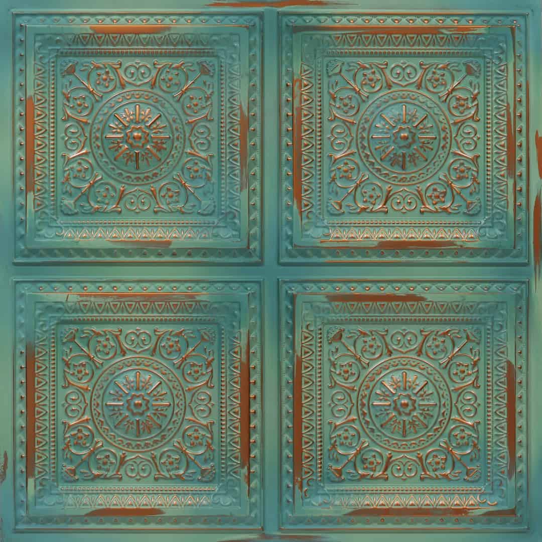 Legacy Natural Patina - Persian Motifs - Blue, Silver - Decorative Ceiling Panel - 2 ft x 2 ft