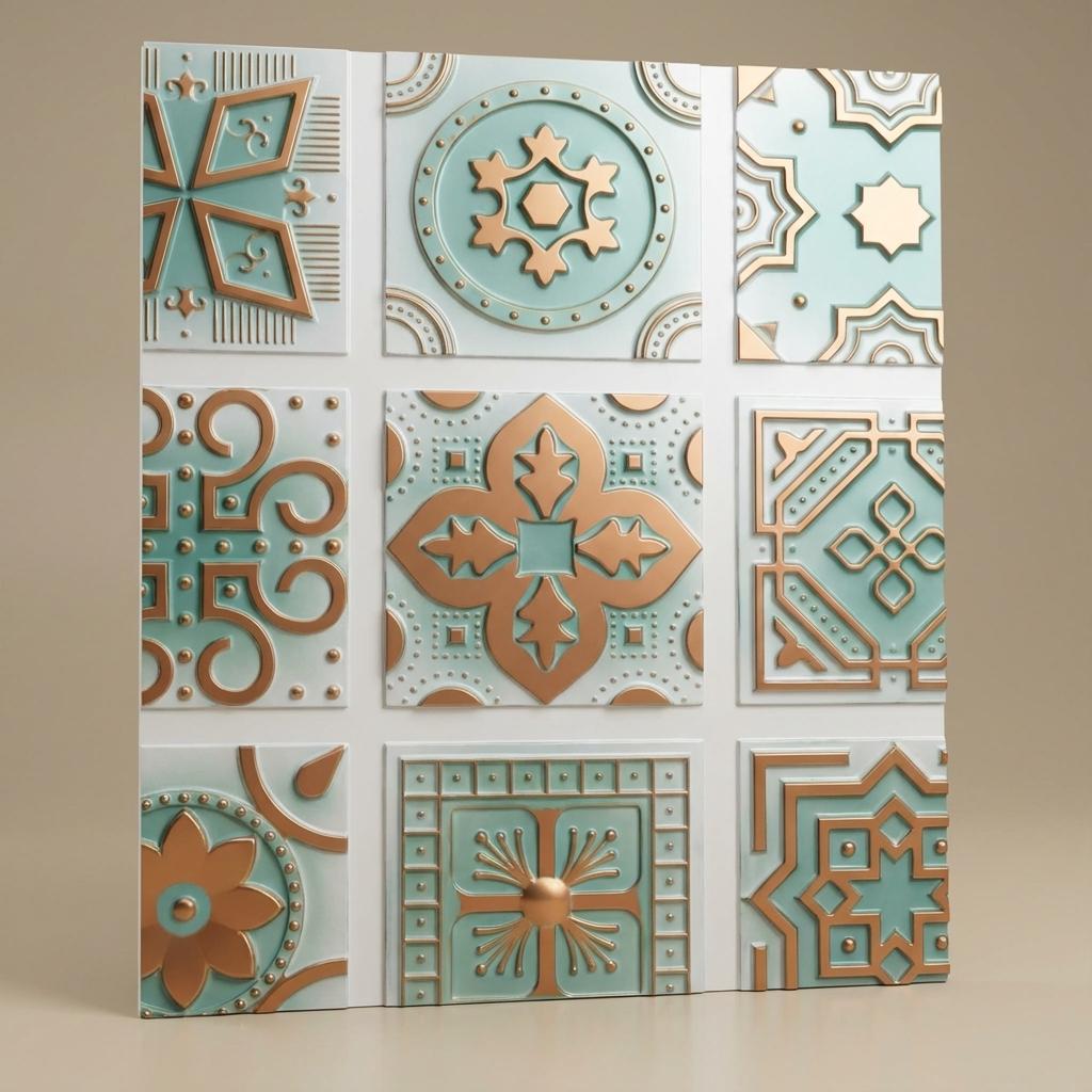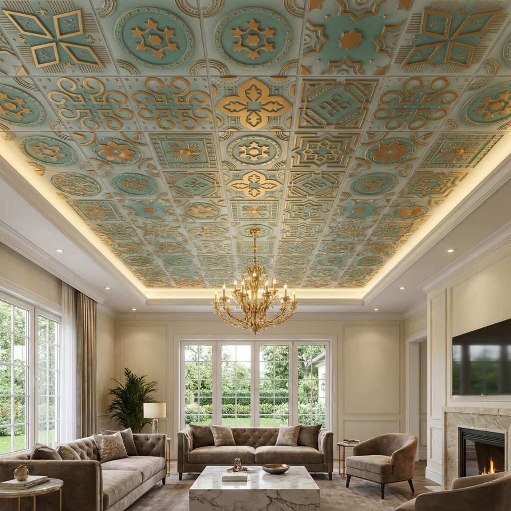 Studio Arabian Green - Persian Motifs - Green, Gold - Decorative Ceiling Panel - 2 ft x 2 ft