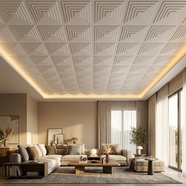 Airy Crisp Paintable - Greek Geometric - White - Decorative Ceiling Panel - 2 ft x 2 ft