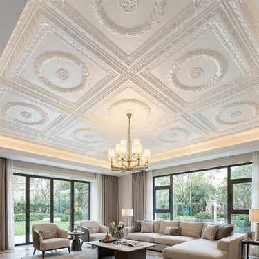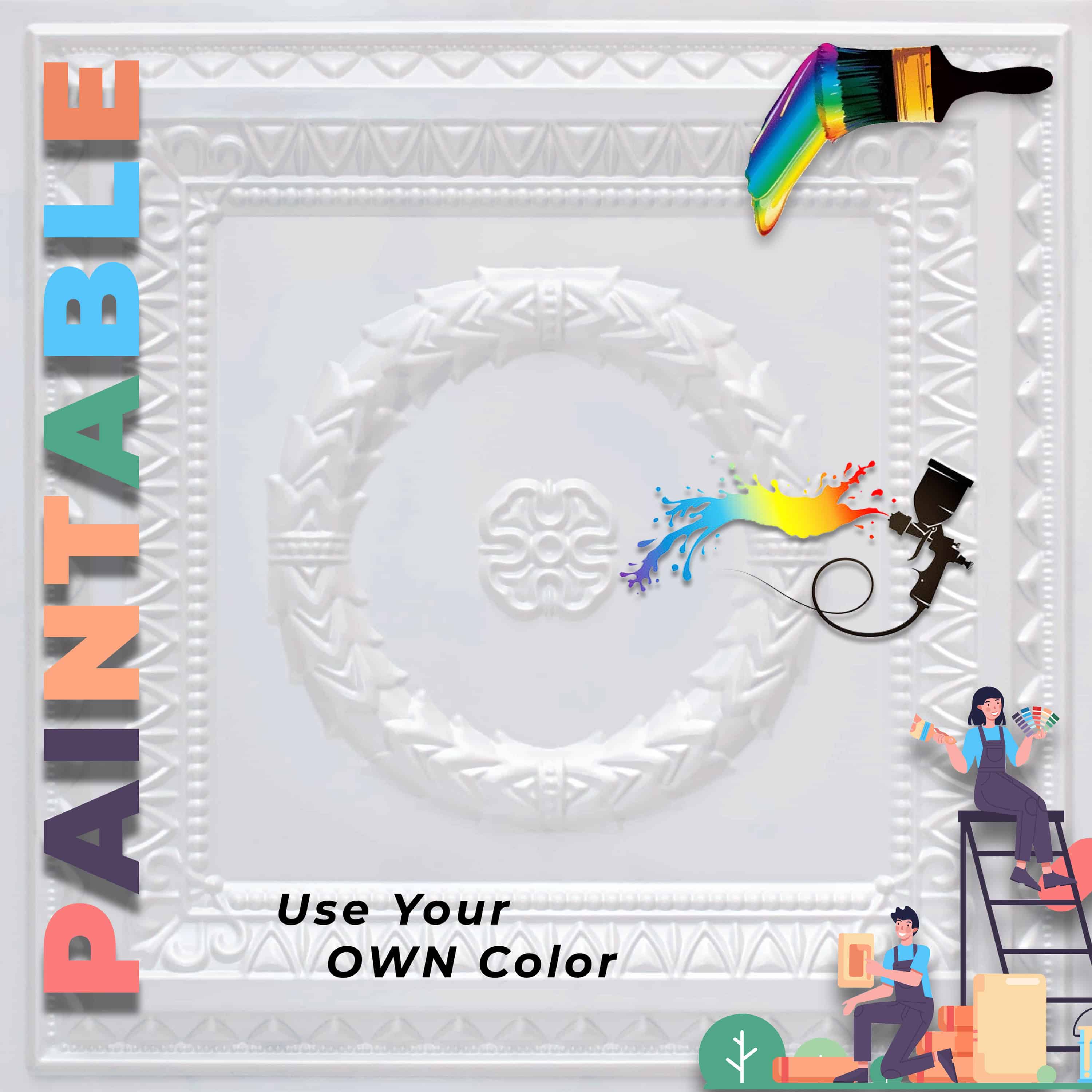 Crisp Paintable - Persian Motifs - White - Decorative Ceiling Panel - 2 ft x 2 ft