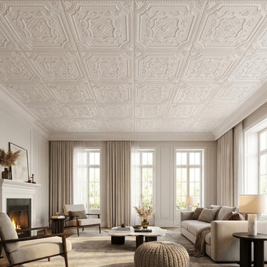 Paintable Marble - Persian Motifs - White - Decorative Ceiling Panel - 2 ft x 2 ft