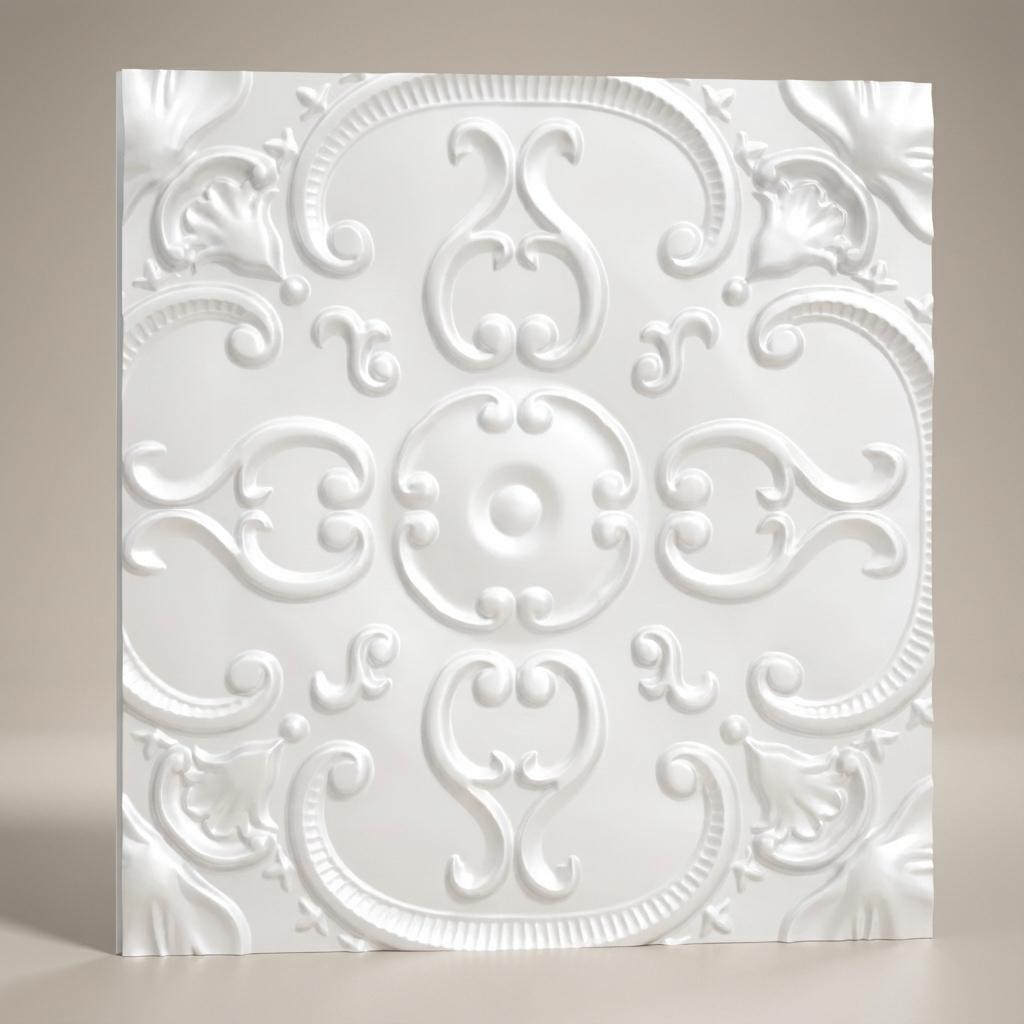 Satin Paintable - Persian Motifs - White - Decorative Ceiling Panel - 2 ft x 2 ft