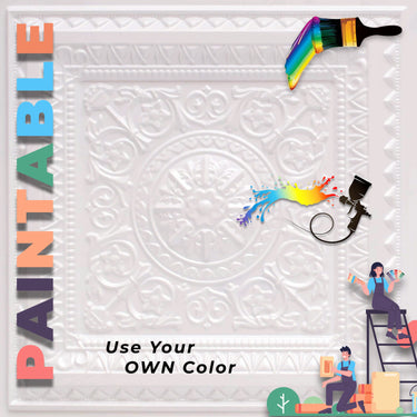 Snow Paintable - Persian Motifs - White - Decorative Ceiling Panel - 2 ft x 2 ft