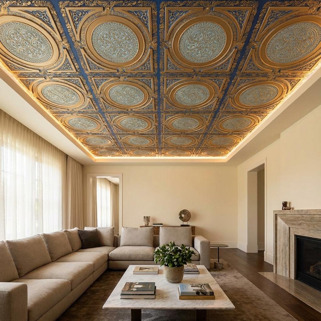 Expressive Golden Swan features luxurious metallic finishes for contemporary interiors. This sophisticated PVC ceiling panel combines stunning visual appeal with practical durability, using advanced printing technology to create authentic metallic effects with impressive depth. The glossy finish beautifully reflects light, perfect for modern elegance. Ideal for statement-making spaces, this panel delivers exceptional quality with water resistance, easy maintenance, and remarkable longevity.