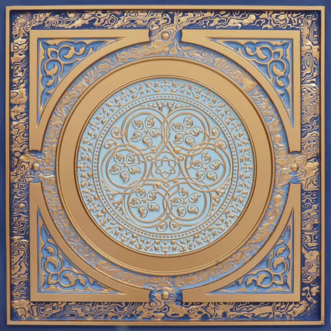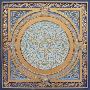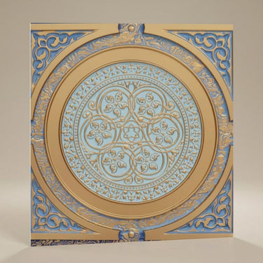 Expressive Golden Swan - Persian Motifs - Gold, Yellow - Decorative Ceiling Panel - 2 ft x 2 ft