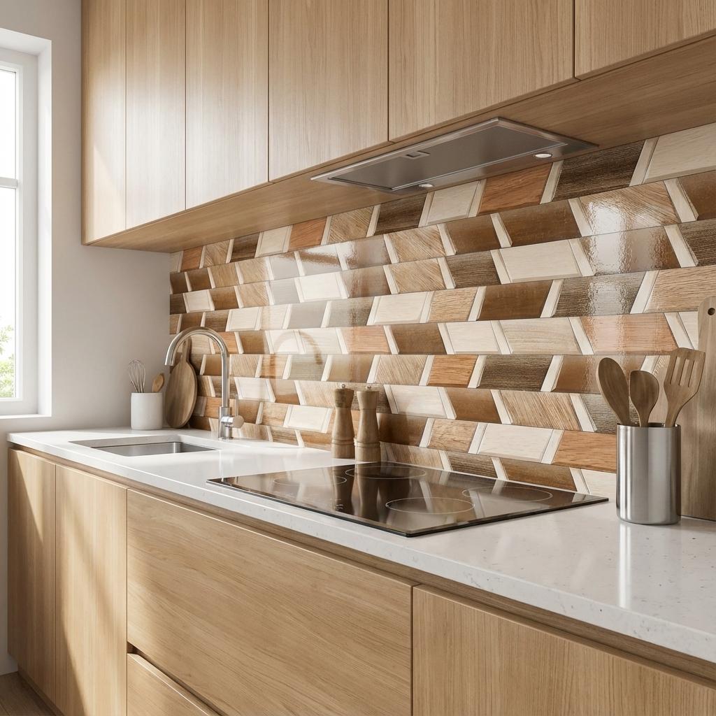 Dynamic terracotta zigzag patterns weave spirited energy and vibrant motion through warm, expressive aesthetics. Made from refined clay, quartz/silica, and feldspar fired at high temperature to create a dense, low‑porosity body with color and pattern running through the entire thickness for superior wear and chip camouflage.