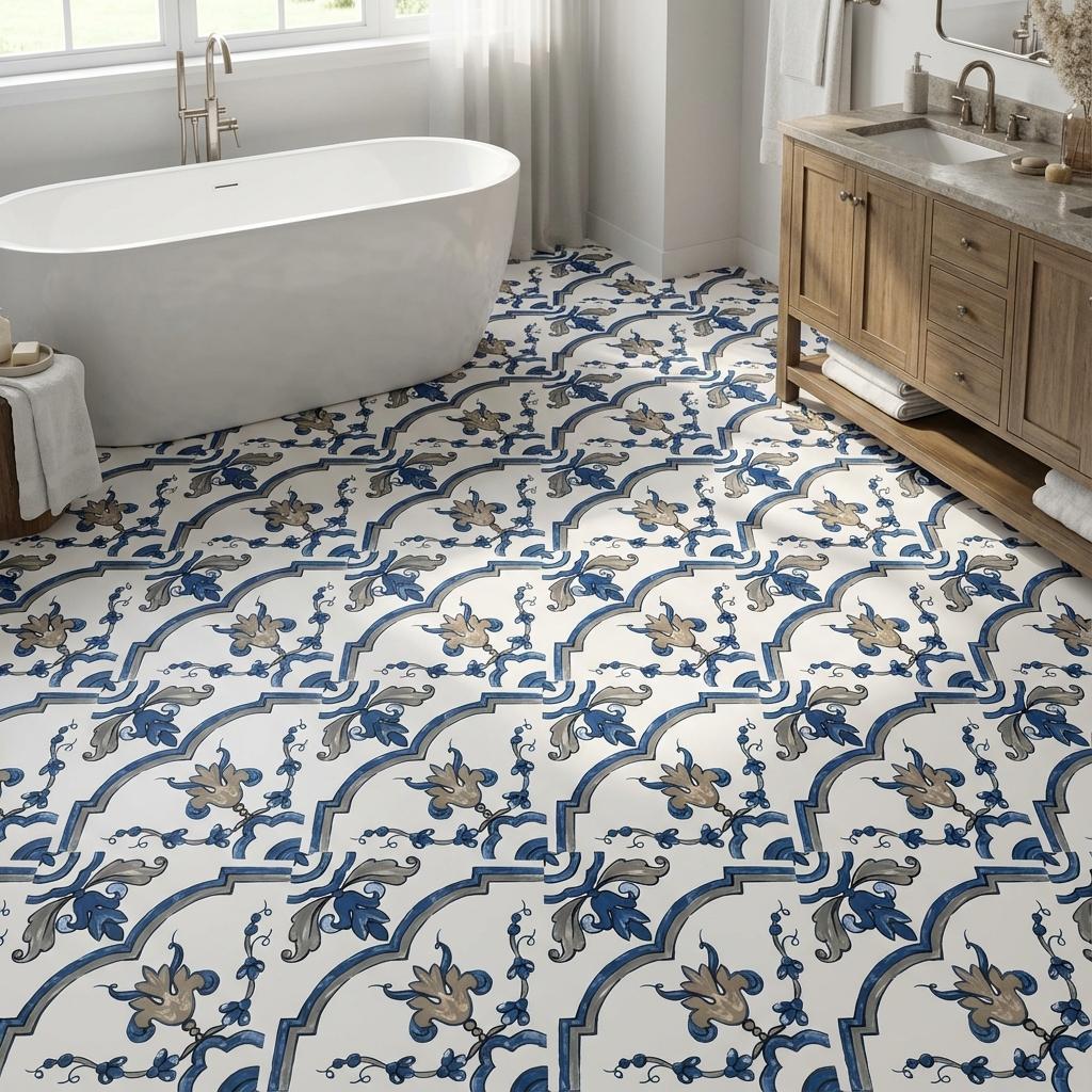 Serene aesthetic bringing Moroccan soul to spaces seeking peaceful sophistication without visual intensity. Made from refined clay, quartz/silica, and feldspar fired at high temperature to create a dense, low‑porosity body with color and pattern running through the entire thickness for superior wear and chip camouflage.