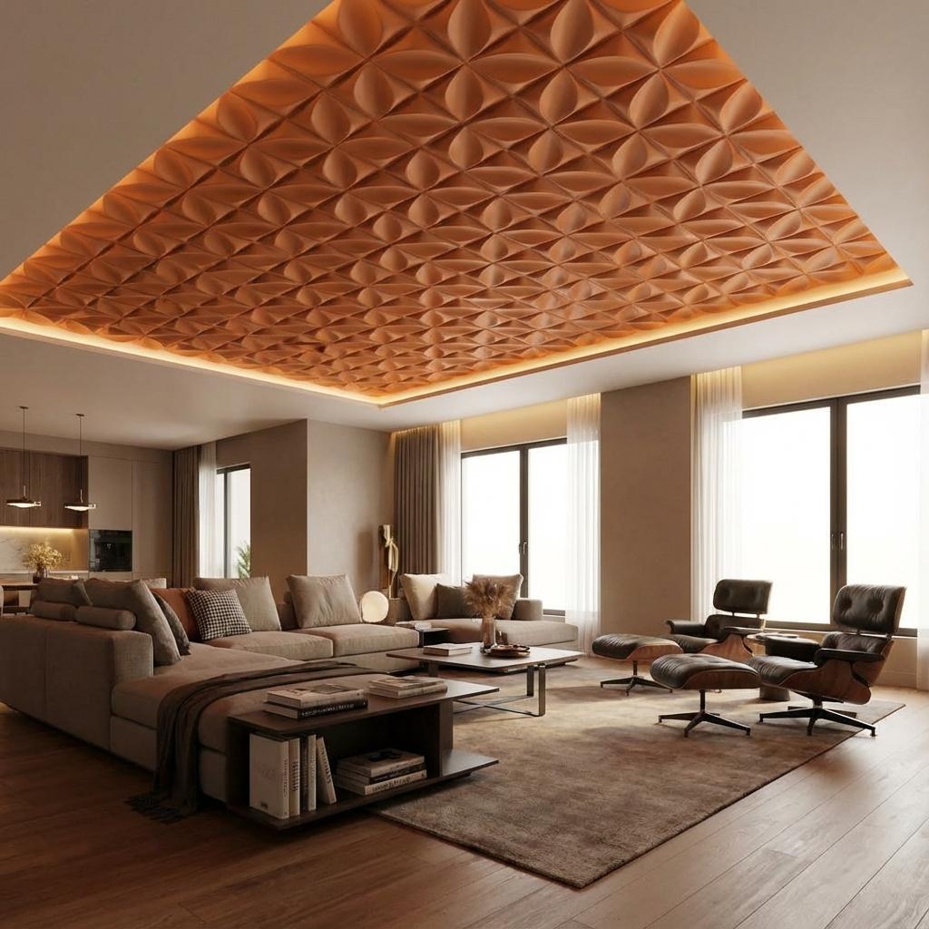 Antique Copper Sparkle features luxurious metallic finishes for contemporary interiors. This sophisticated PVC ceiling panel combines stunning visual appeal with practical durability, using advanced printing technology to create authentic metallic effects with impressive depth. The glossy finish beautifully reflects light, perfect for modern elegance. Ideal for statement-making spaces, this panel delivers exceptional quality with water resistance, easy maintenance, and remarkable longevity.