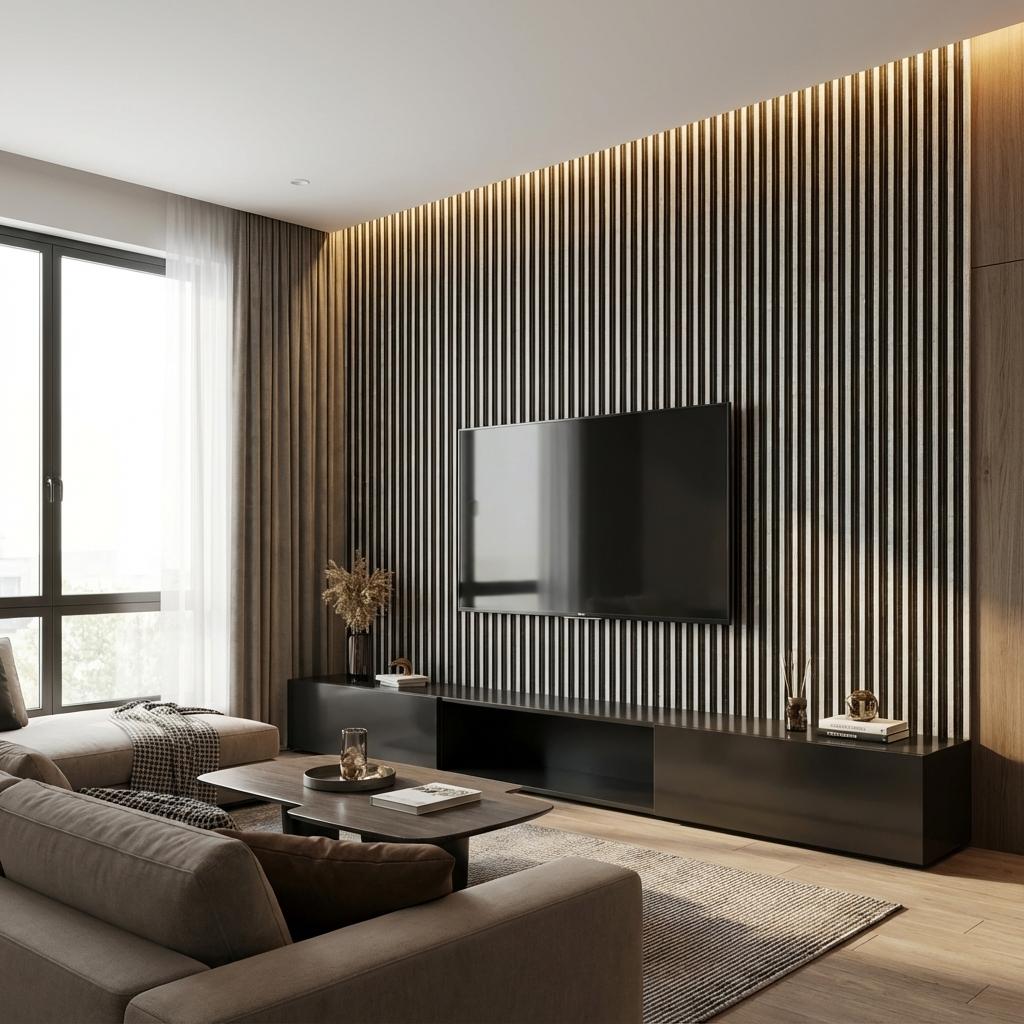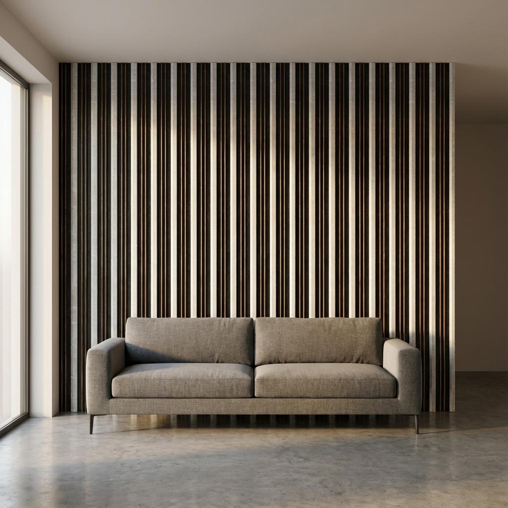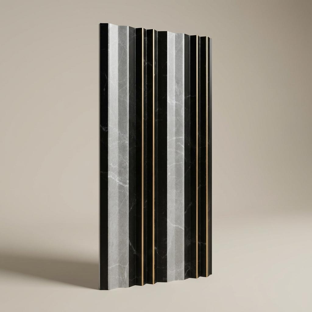 Louvers constructed with Polystyrene core and Stone, finished in matte Multi-colour. Delivers a textured modern look suitable for accent walls.
