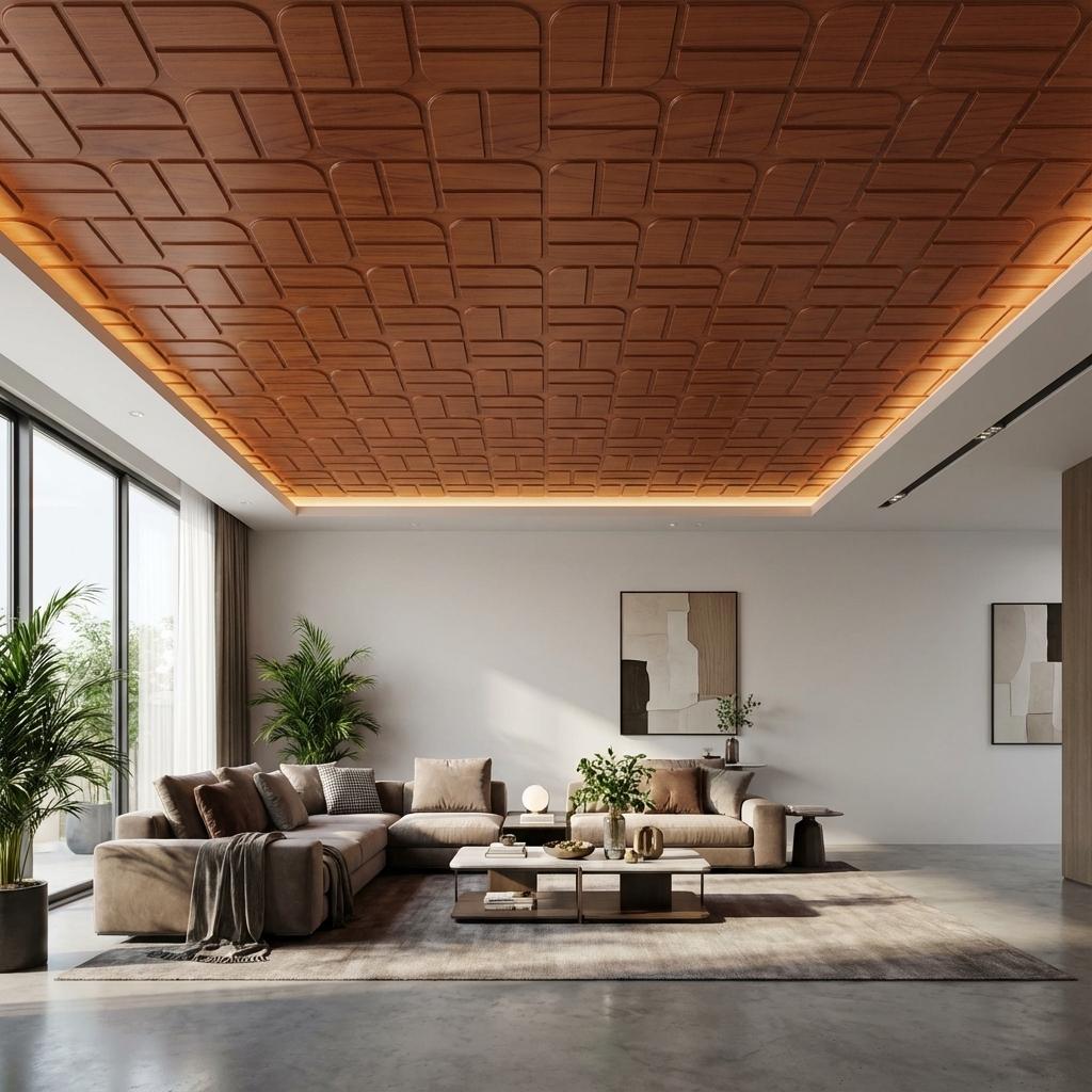 Timeless Cherry Wood - Moraccan Meshwork - Brown, Wooden - Decorative Ceiling Panel - 2 ft x 2 ft
