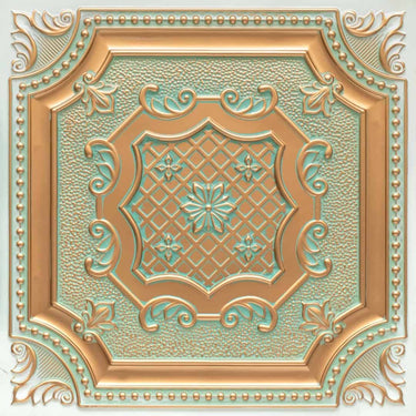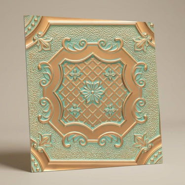 Abstract Arabian Green - Persian Motifs - Green, Gold - Decorative Ceiling Panel - 2 ft x 2 ft