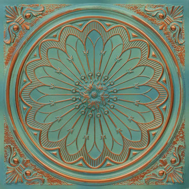 Aged Natural Patina - Baali Botanical - Blue, Silver - Decorative Ceiling Panel - 2 ft x 2 ft