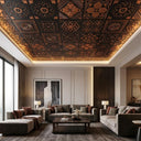 Antique Copper Shimmer features luxurious metallic finishes for contemporary interiors. This sophisticated PVC ceiling panel combines stunning visual appeal with practical durability, using advanced printing technology to create authentic metallic effects with impressive depth. The glossy finish beautifully reflects light, perfect for modern elegance. Ideal for statement-making spaces, this panel delivers exceptional quality with water resistance, easy maintenance, and remarkable longevity.