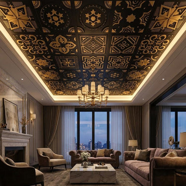 Antique Gold Hammered features luxurious metallic finishes for contemporary interiors. This sophisticated PVC ceiling panel combines stunning visual appeal with practical durability, using advanced printing technology to create authentic metallic effects with impressive depth. The glossy finish beautifully reflects light, perfect for modern elegance. Ideal for statement-making spaces, this panel delivers exceptional quality with water resistance, easy maintenance, and remarkable longevity.